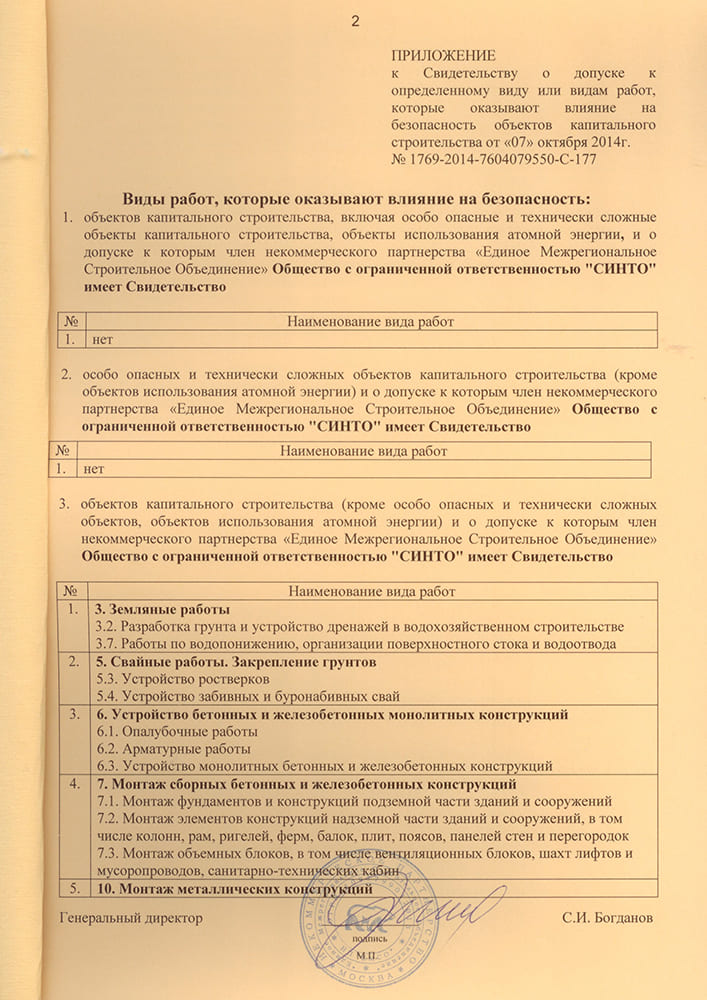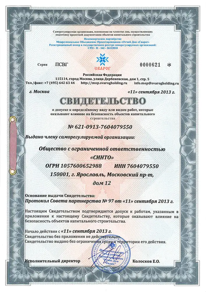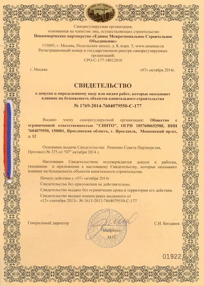 Свидетельство № 1769-2014-7604079550-С-177 на безопасность объектов капитального строительства.
