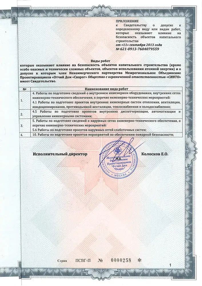 4.1. Работы по подготовке проектов внутренних инженерных систем отопления, вентиляции, кондиционирования, противодымной вентиляции, теплоснабжения и холодоснабжения.