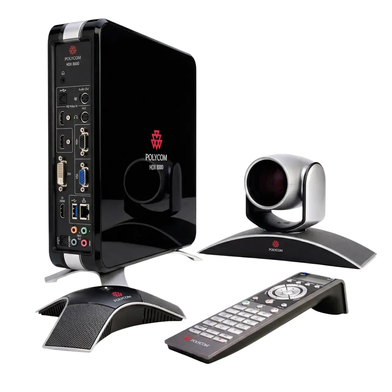 ➡️ 1. Polycom HDX 8000-720 (кодек HDX 8000, камера Polycom EagleEye III, микрофонный массив HDX, People+Content, кабели и пульт ДУ).
